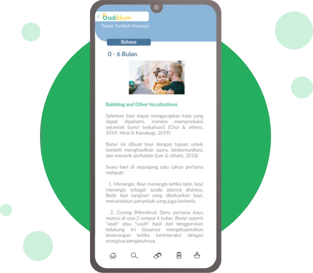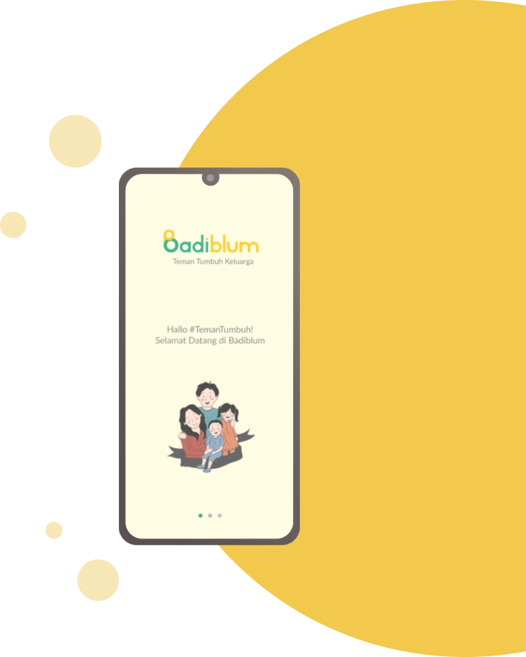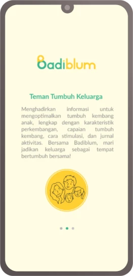 Aplikasi Badiblum yang simpel dan reliabel, hadir untuk mendampingi orang tua dalam menemani tumbuh kembang si kecil, dengan cara memberikan informasi mengenai perkembangan anak usia 0-6 tahun dan bagaimana cara menstimulasinya. Gratis!